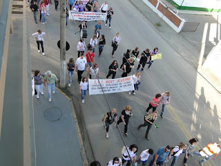 Em torno de mil professores e dezenas de alunos participaram de uma concentração e ato público na Praça Ermenbergo Pellizzetti, no nono dia de greve do magistério catarinense, que cobra do governador Raimundo Colombo a imediata aplicação da lei que criou, em 2008, o Piso Nacional do Magistério e que foi julgada constitucional pelo STF no início de abril deste ano. Santa Catarina havia entrado na justiça contra a lei.